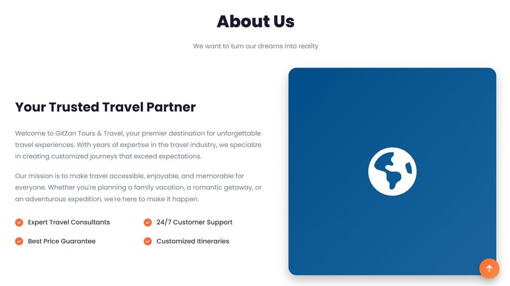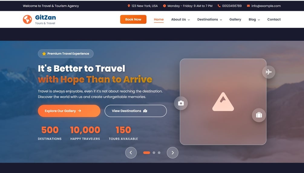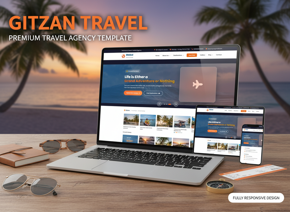 Gitzan Travel is a premium, fully responsive travel agency website template. Perfect for travel companies, tour operators, tourism businesses, and airline companies looking for a professional, feature-rich website.